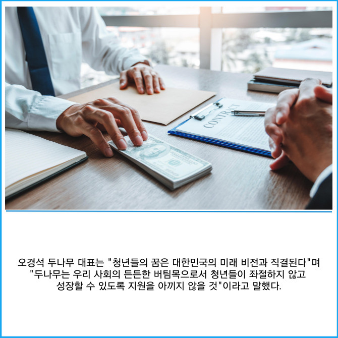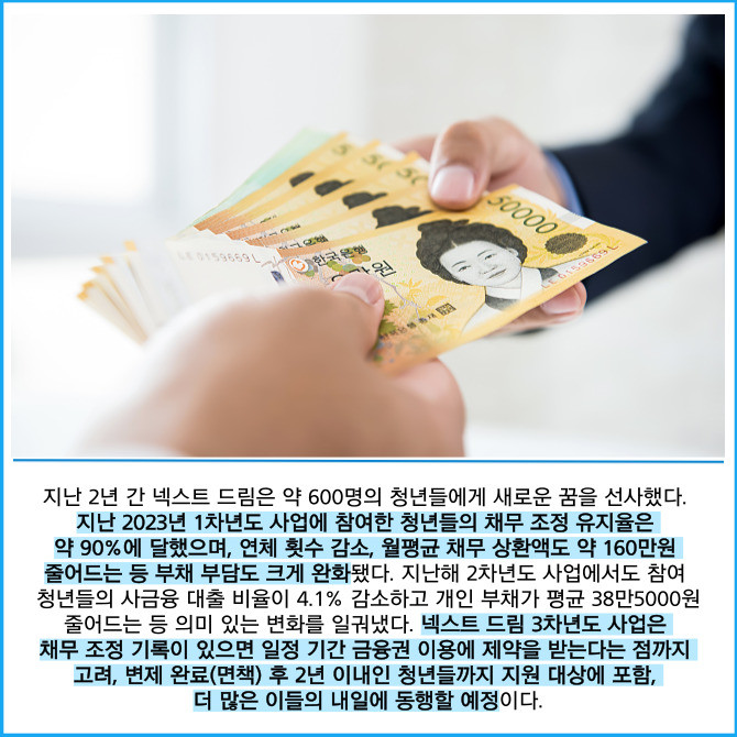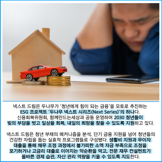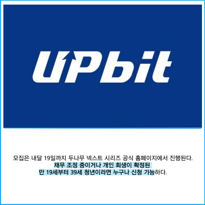 [프라임경제] 가상자산 거래소 업비트를 운영하는 두나무는 채무 부담으로 어려움을 겪는 청년들의 신용 회복을 위한 '두나무 넥스트 드림(이하 넥스트 드림)'의 3차년도 참여자를 모집한다고 26일 밝혔다.