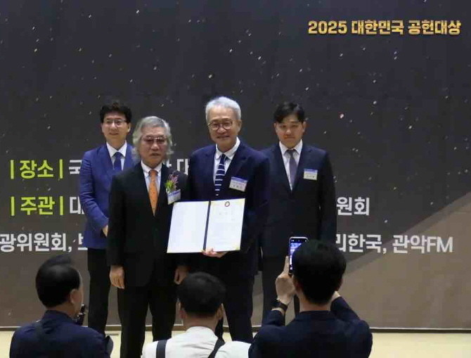 오한진 아이디병원 엑소밸런스센터장(오른쪽)이 지난 30일 제5회 대한민국 교육문화체육공헌대상에서 표창장을 전달받은 뒤 기념 촬영을 하고 있다. © 아이디병원