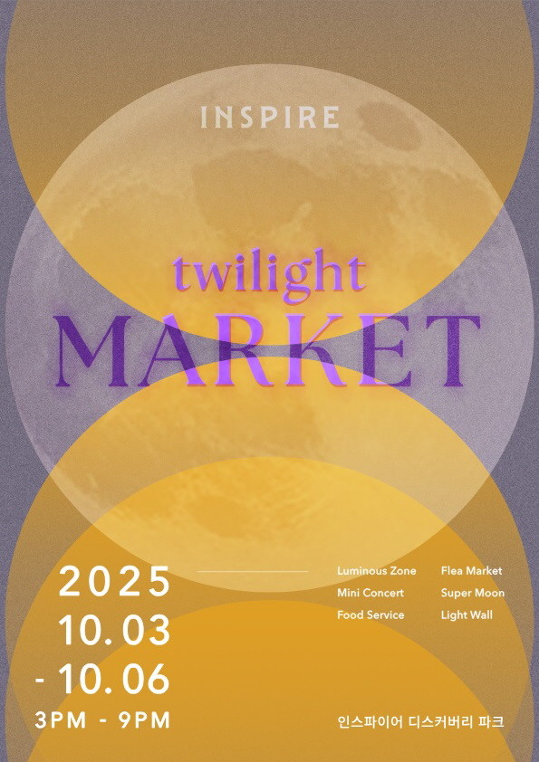 먼저 추석 황금 연휴가 시작되는 10월3일부터 6일까지, 총 4일간 디스커버리 파크에서 가을의 풍요로움을 만끽할 수 있는 '트와일라잇 마켓'이 펼쳐질 예정이다.