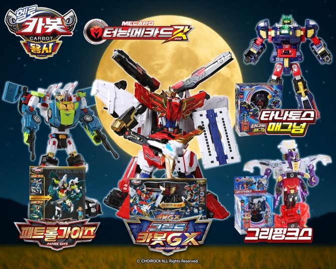 그 주인공은 초이락의 최신 라인업인 '헬로카봇 시즌16-용사'와 '터닝메카드 갓'에서 각각 어린이들의 마음을 사로잡은 로봇 합체 완구 4종이다. 헬로카봇 시즌16-용사에서는 '패트롤가이즈'와 '그랜드 카봇GX', 터닝메카드 갓에서는 '타나토스 매그넘'과 '그리핑크스'가 나선다. 이들 합체 완구는 화려한 변신‧합체와 슈퍼파워를 자랑한 애니메이션 속 모습 그대로, 최고의 기술적 완성도로 재현됐으면서도 각기 다른 만족감을 선사한다.