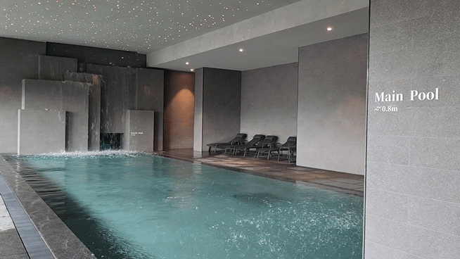 실내에는 창문으로 들어오는 자연의 빛과 밤하늘을 떠올리게 만드는 천장의 조명으로 밤낮의 다름을 연출한 메인풀, 천장에서 쏟아지는 물줄기가 생동감을 더하는 레인풀, 깊은 고요와 몰입을 경험하는 시크릿풀이 자리하고 있다.