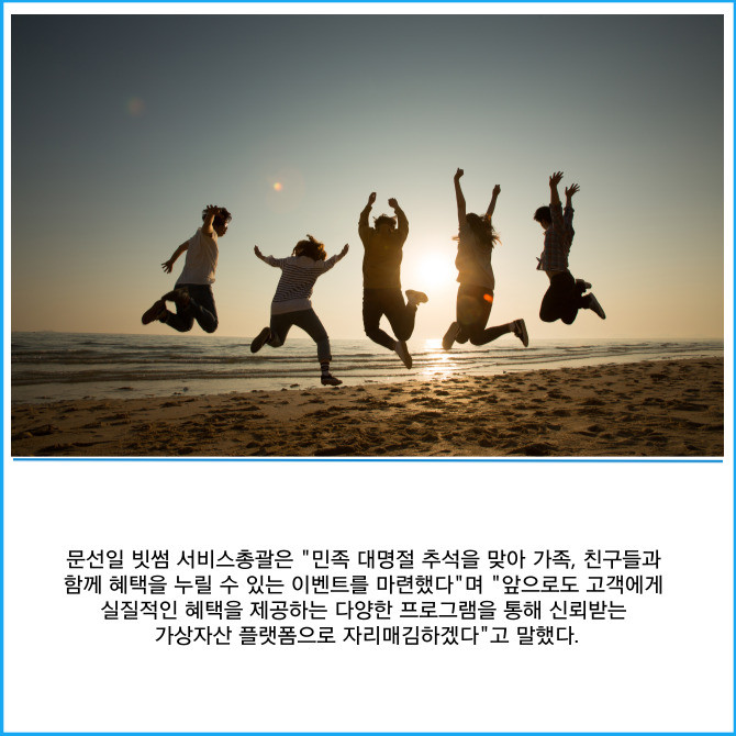 [프라임경제] 빗썸은 추석 명절을 맞아 가족과 지인에게 감사의 마음을 전할 수 있도록 코인 선물하기 이벤트를 이날부터 오는 15일까지 진행한다고 2일 밝혔다. 이번 이벤트는 친구 초대 및 거래 실적에 따라 참여자와 신규 가입자 모두에게 풍성한 혜택을 제공하는 것이 특징이다.