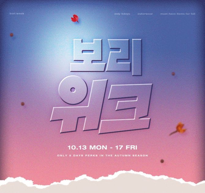 연령대별 큐레이션도 특징이다. 베이비·토들러·키즈 등 매일 다른 연령대에 맞춘 추천 아이템을 선보여 스마트한 쇼핑이 가능하며, 보리보리 MD가 직접 엄선한 등원, 등교 등 상황별 가을 스타일도 소개한다.