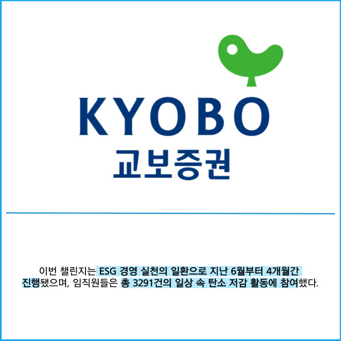 [프라임경제] 교보증권(030610)은 친환경 캠페인 '그린레이스 모아모아 챌린지'가 1000만포인트 목표를 달성했다고 17일 밝혔다.