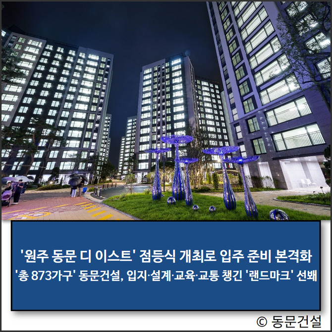 동문건설 '원주 동문 디 이스트'가 이달 16일 점등식을 성공적으로 개최, 본격적인 입주 준비에 돌입했다.