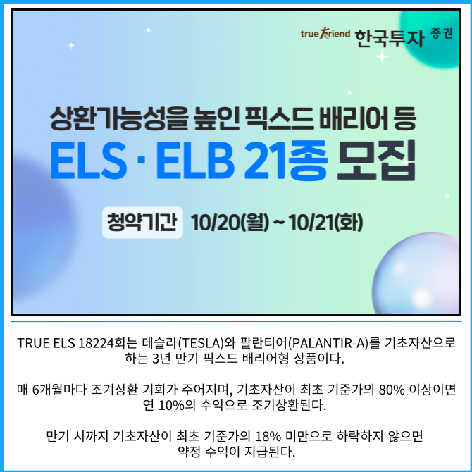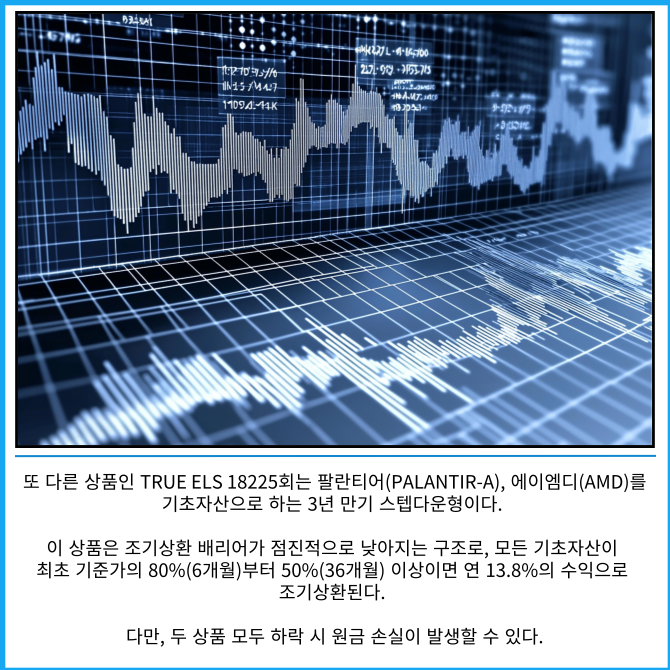 이번에 출시된 대표 상품은 낙인(Knock-In)을 18%로 대폭 낮춰 안정성을 높인 TRUE ELS 18224회와, 연 13.8%의 고수익을 추구하는 스텝다운형 TRUE ELS 18225회다.