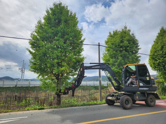 의성군은 지난 19일 은행나무에서 떨어지는 열매로 인한 주민 불편을 해소하기 위해 진동 수확기를 활용한 시범 채취 작업을 실시했다.