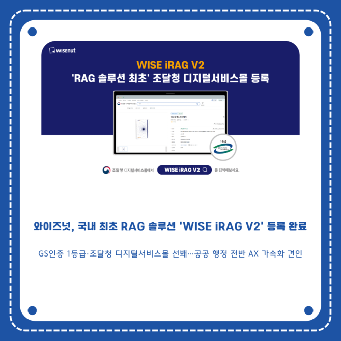 [카드] 와이즈넛, 국내 최초 RAG 솔루션 등록 완료