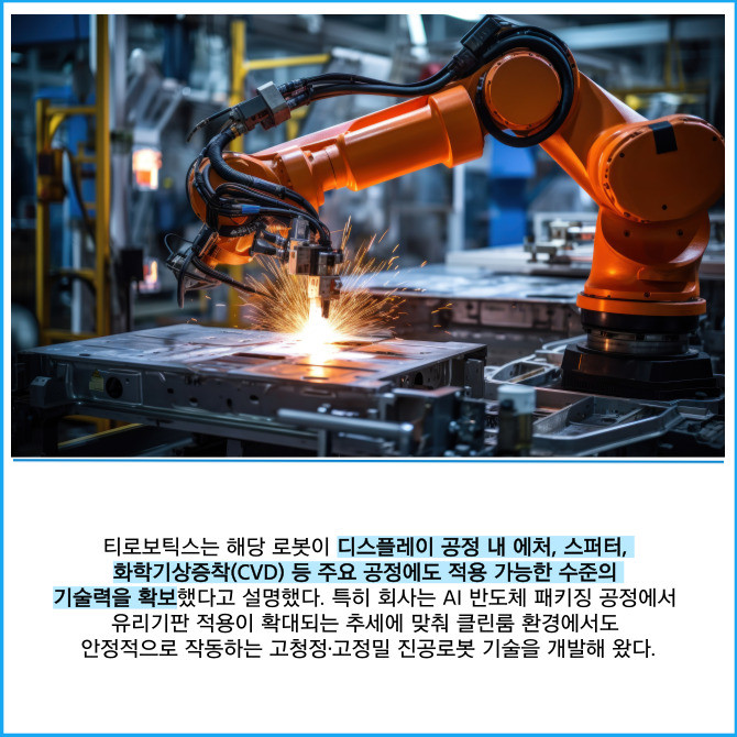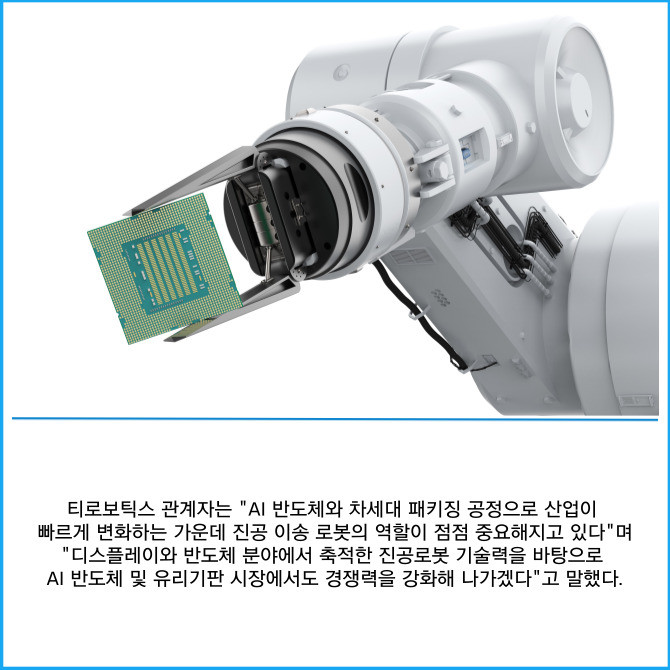 [프라임경제] 로봇 전문기업 티로보틱스(117730)는 이날부터 오는 24일까지 서울 코엑스에서 열리는 '반도체대전 2025(SEDEX 2025)'에 참가해 인공지능(AI) 반도체 및 유리기판 제조공정용 진공로봇을 공개한다고 22일 밝혔다.