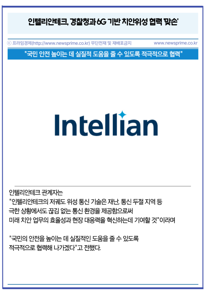 [카드] 인텔리안테크, 경찰청과 6G 기반 치안위성 협력 '맞손'