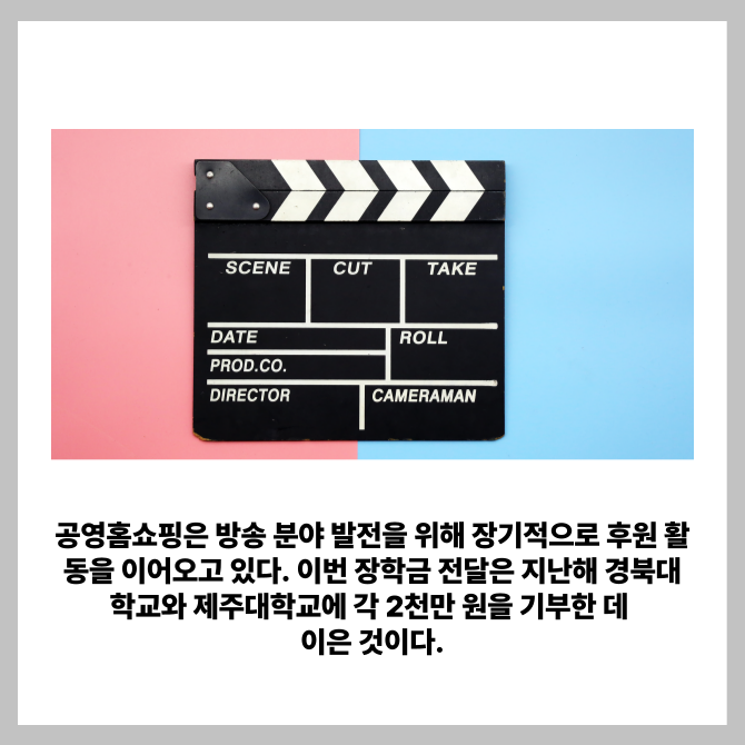 [프라임경제] 공영홈쇼핑이 방송 우수 인재 양성을 위한 장학금 2천만원을 전남대·경상대에 기부한다고 24일 밝혔다.