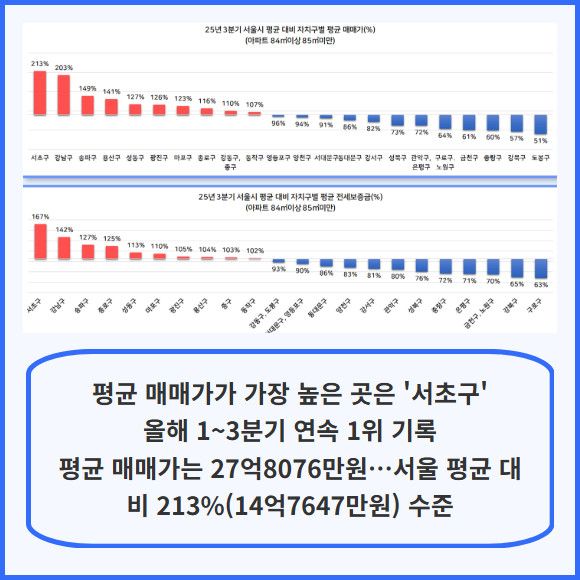 [카드] 서초·강남, 초고가 행진 속 서울 평균도 13억 '훌쩍'