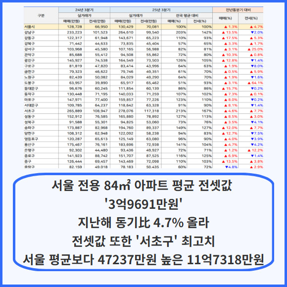 [프라임경제] 서울에 있는 전용면적 84㎡ 아파트의 3분기 기준 평균 매매가격이 13억원을 넘어가는 것으로 집계됐다.