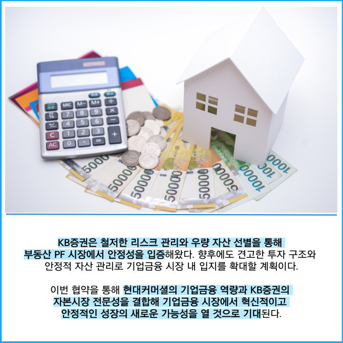 [프라임경제] KB증권은 현대커머셜과 지난달 31일 '기업금융 시장에서의 상호 협력을 통해 시장 경쟁력을 강화하기 위한 업무협약(MOU)'을 체결했다고 3일 밝혔다.
