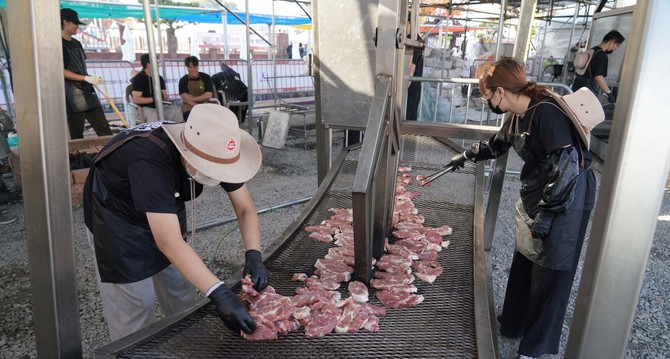 2025 홍성글로벌바비큐페스티벌축제장에서 고기를 굽고 있다. ⓒ 홍성군