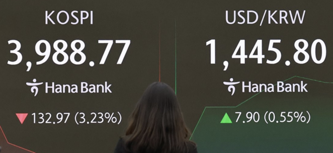 원‧달러 환율이 급등한 점도 외국인의 투자 심리를 위축시켰다. 서울 외환시장에서 달러 대비 원화 환율은 전날보다 5.6원 오른 1443.5원에 거래를 시작했다. 한때 1446.3원까지 올라 7개월 만에 가장 높은 수준을 나타내기도 했다.