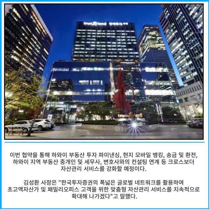 [카드] 한투증권, 하와이 '센트럴 퍼시픽 뱅크'와 MOU