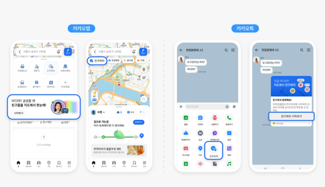 카카오맵 친구위치 기능. ⓒ 카카오맵 공식 블로그