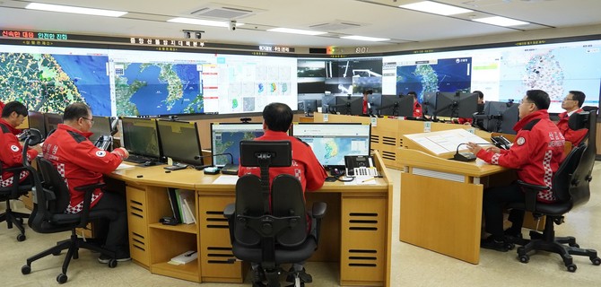 김인호 산림청장이 17일 중앙산불방지대책본부에서 산불 대응체계를 점검하고 있다. ⓒ 산림청