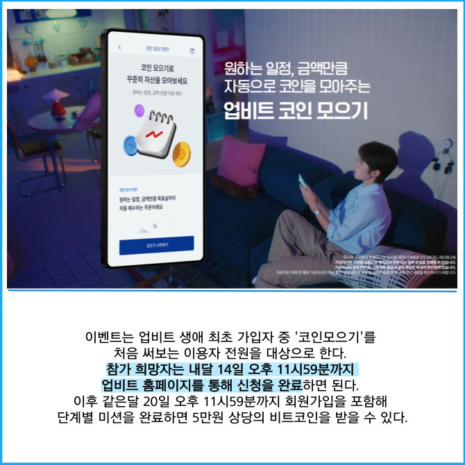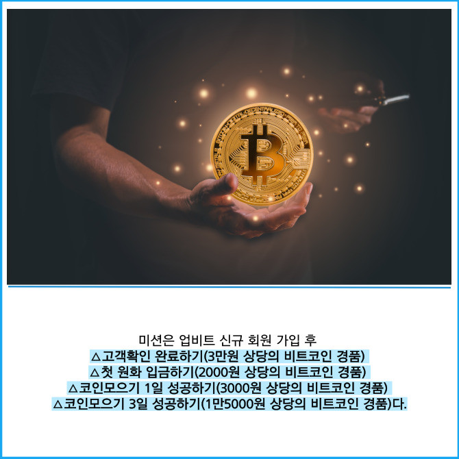 신규가입 후 미션 성공 시 5만원 상당 비트코인 지급…미션 달성도에 따라 차등 보상