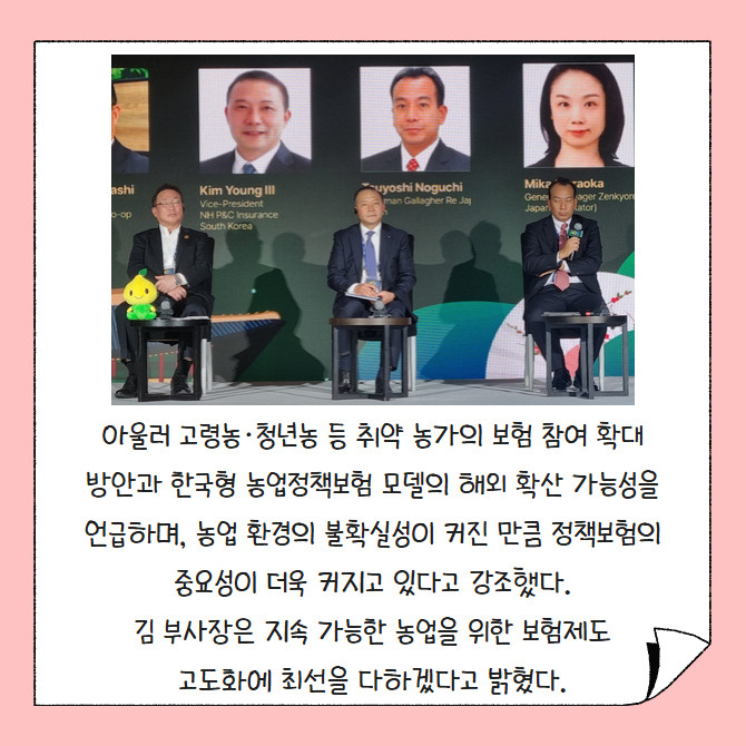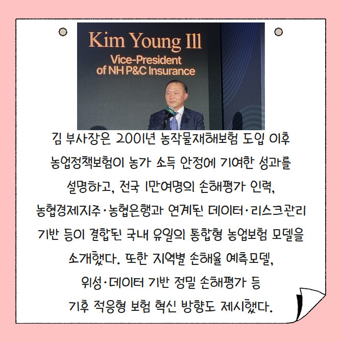 [카드] 김영일 농협손보 부사장, AOA 세미나서 'K-농업보험정책' 발표