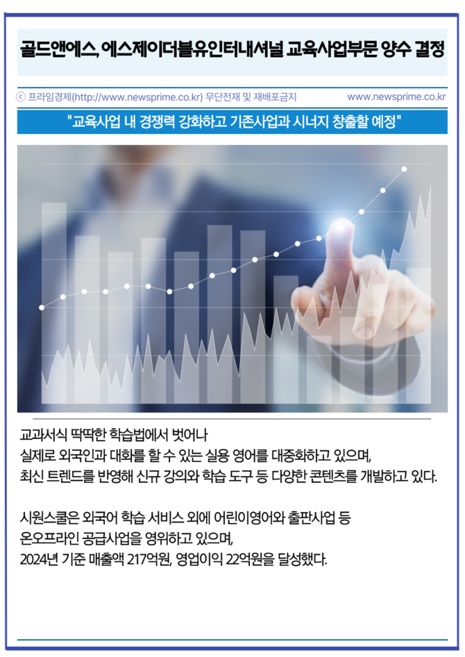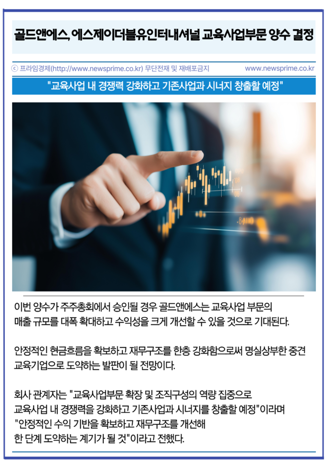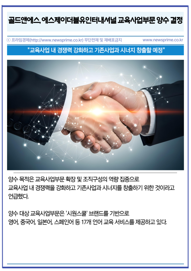 [카드] 골드앤에스, 에스제이더블유인터내셔널 교육사업부문 양수 결정