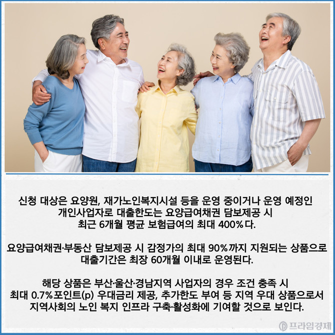 [프라임경제] IBK저축은행이 노인복지 사업자 전용 'IBK실버사업자대출'을 출시했다고 24일에 밝혔다.