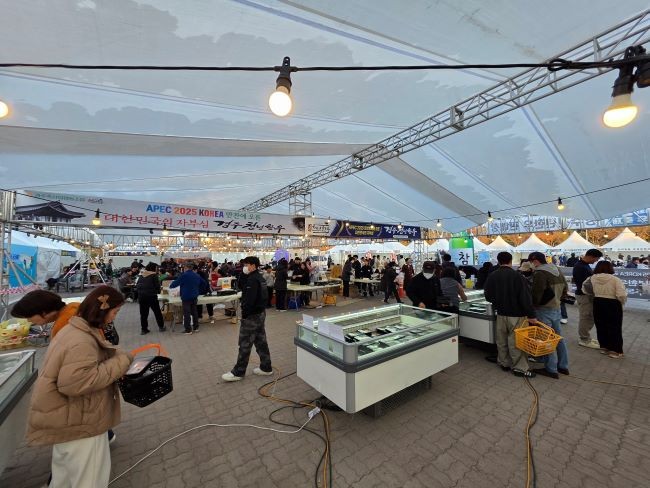 경주 황성공원 타임캡슐광장에 마련된 '2025 경주 한우축제' 판매체험 부스에서 시민들이 천년한우와 지역 축산물을 구매하고 있다. ⓒ 경주시