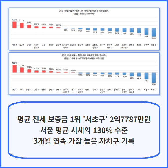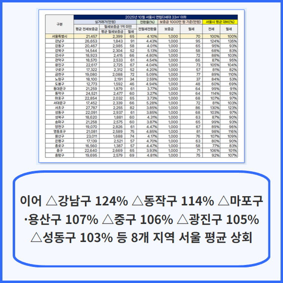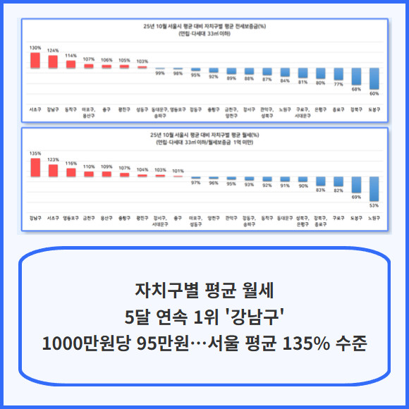 [프라임경제] 지난달 서울 원룸 월세가 평균 70만원을 기록한 가운데, 강남구가 5개월 연속 가장 비싼 지역으로 나타났다. 전세 보증금은 서초구가 2억7700만원대로 서울에서 가장 높아, 서울 원룸 시장의 전·월세 모두에서 강남·서초 중심의 가격 격차가 더욱 뚜렷해지고 있다.