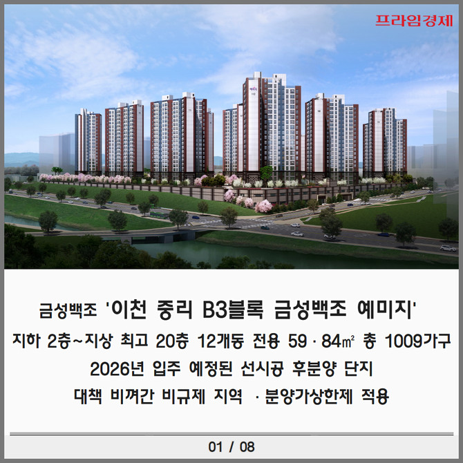 [카드] 이천 중리택지지구 마지막 분양…'예미지' 1009가구 선시공 후분양