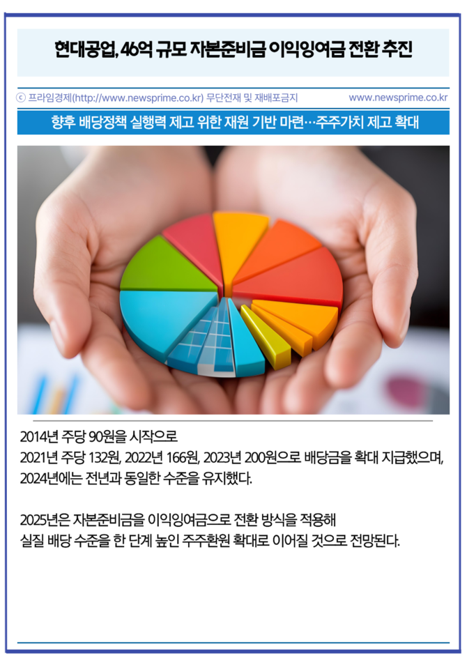 [카드] 현대공업, 46억 규모 자본준비금 이익잉여금 전환 추진