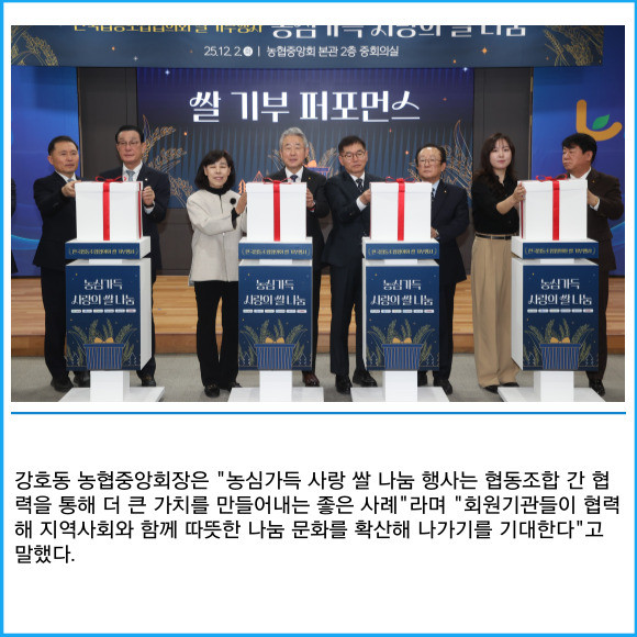 [프라임경제] 한국협동조합협의회가 농협중앙회 '농심가득 사랑의 쌀 나눔' 행사를 통해 총 4억원 규모의 쌀을 기부했다고 2일 밝혔다.