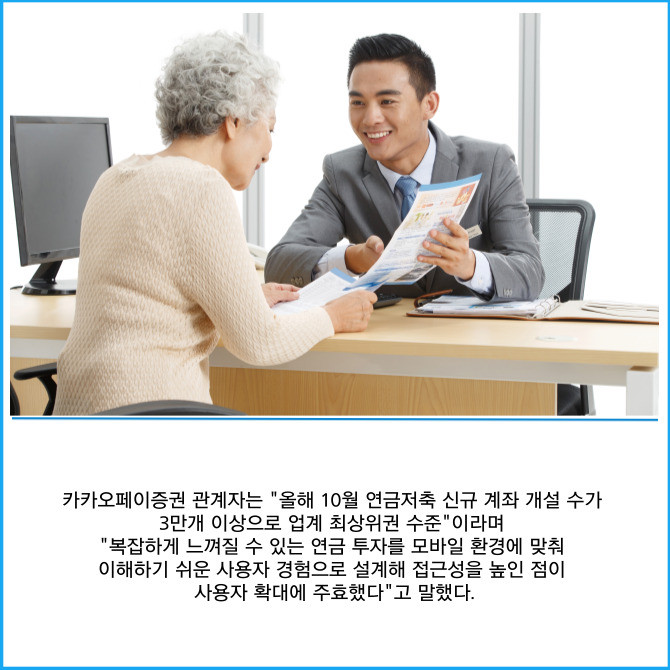 [프라임경제] 카카오페이증권은 모바일 기반 연금저축계좌가 지난달 6일 기준 30만계좌를 돌파했다고 밝혔다. 지난해 11월 말 서비스 시작 후 11개월 만에 거둔 성과다.