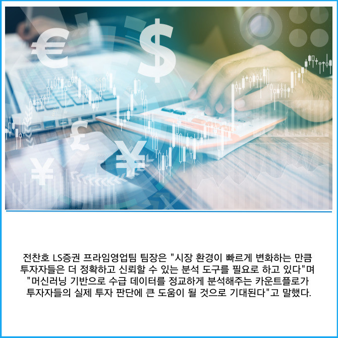 [프라임경제] LS증권(078020)은 증권사 최초로 머신러닝 수급 분석 서비스인 '카운트플로'를 출시했다고 4일 밝혔다.