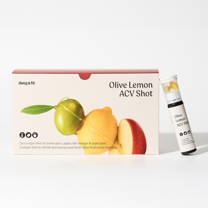 당앤핏 올리브 레몬 애사비샷은 최근 MZ세대 사이에서 유행하는 올리브유, 레몬즙, 애사비(애플사이다비니거) 섭취 루틴을 제품 하나에 담았다. 캡슐과 액상을 동시에 섭취하는 이중 제형으로 편의성을 높였다.