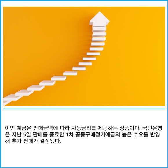 [프라임경제] KB국민은행이 오는 19일까지 '공동구매정기예금'을 추가 판매한다고 9일 밝혔다.