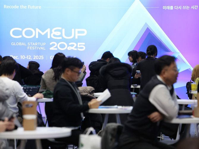 지난 10일 서울 강남구 코엑스에서 열린 글로벌 스타트업 페스티벌 '컴업 2025'에서 스타트업 관계자와 투자자들이 교류하고 있다. ⓒ 연합뉴스