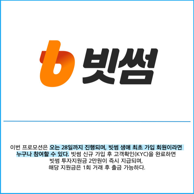 [프라임경제] 빗썸은 채용 플랫폼 진학사 캐치와 빗썸 신규 회원을 대상으로 최대 10만 원 상당의 혜택을 제공하는 프로모션을 진행한다고 5일 밝혔다.