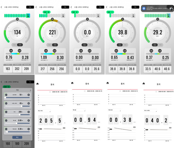 앱에서 스윙 스피드·비거리·스윙시간·횟수 확인뿐 아니라 기록·통계·데이터 업로드까지 가능