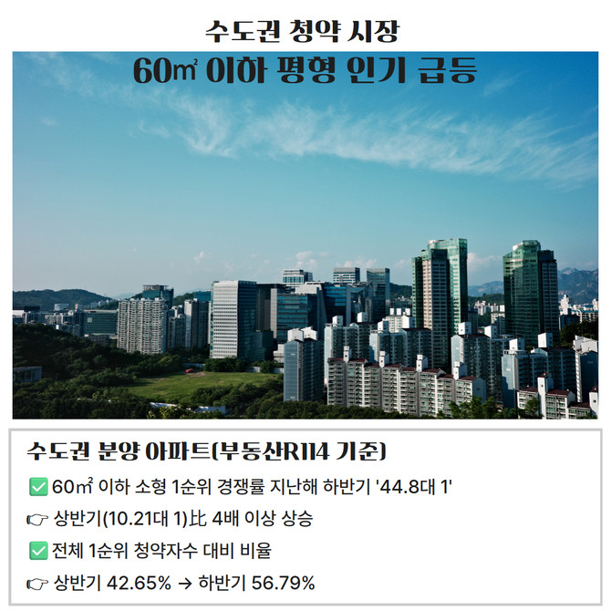 [프라임경제] 수도권 청약 시장에서 전용면적 60㎡ 이하 소형 평형 아파트 인기가 급등하고 있다. 최근 부동산 대출 규제가 강화되면서 자금 마련 부담이 비교적 적은 소형 평형대에 수요자 쏠림 현상이 나타나고 있기 때문으로 풀이된다.