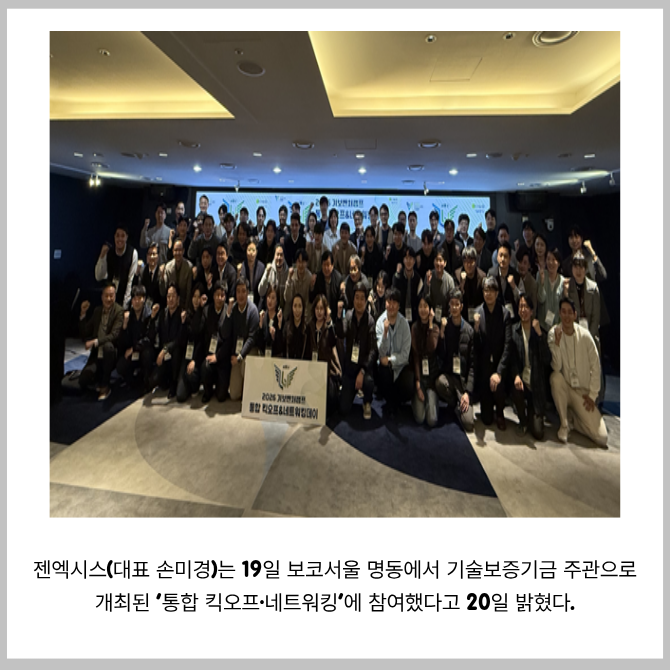[프라임경제] 젠엑시스(대표 손미경)는 19일 보코서울 명동에서 기술보증기금 주관으로 개최된 '통합 킥오프·네트워킹'에 참여했다고 20일 밝혔다.