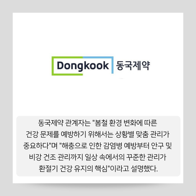 [카드] 봄철 건강 위협 늘어…동국제약 관리 아이템 제시