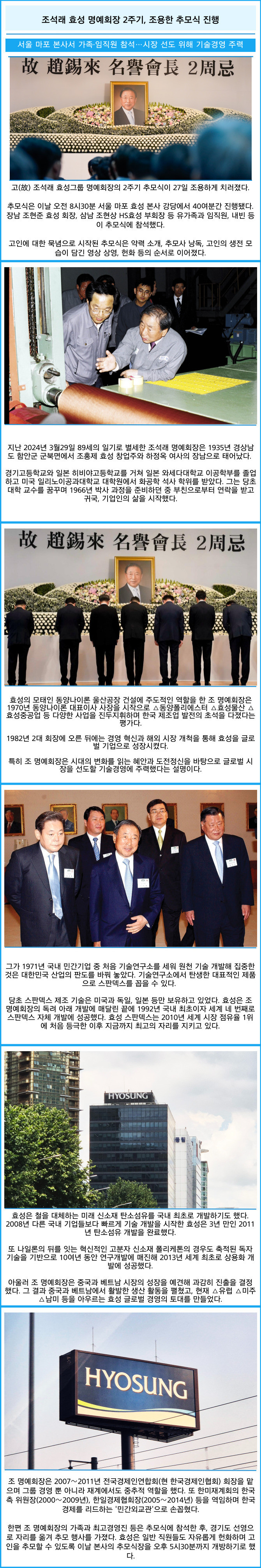 [프라임경제] 고(故) 조석래 효성그룹 명예회장의 2주기 추모식이 27일 조용하게 치러졌다.