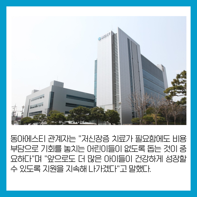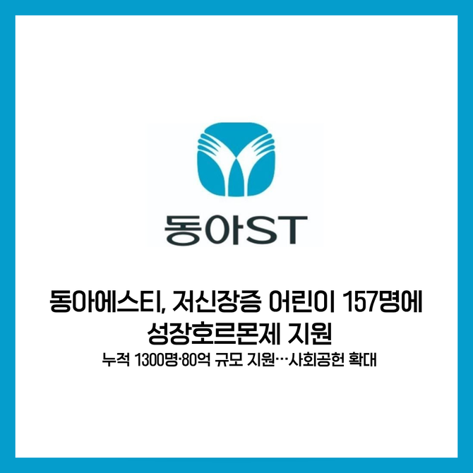 [카드] 동아에스티, 저신장증 어린이 157명에 성장호르몬제 지원