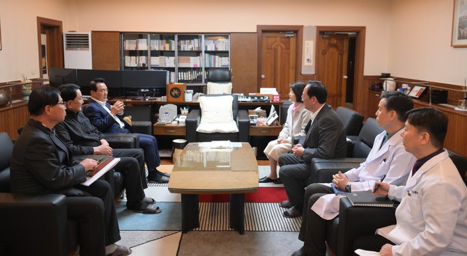 ㈜한국신약을 방문해 지역 기업의 애로사항을 청취하고 있다. ⓒ 논산시